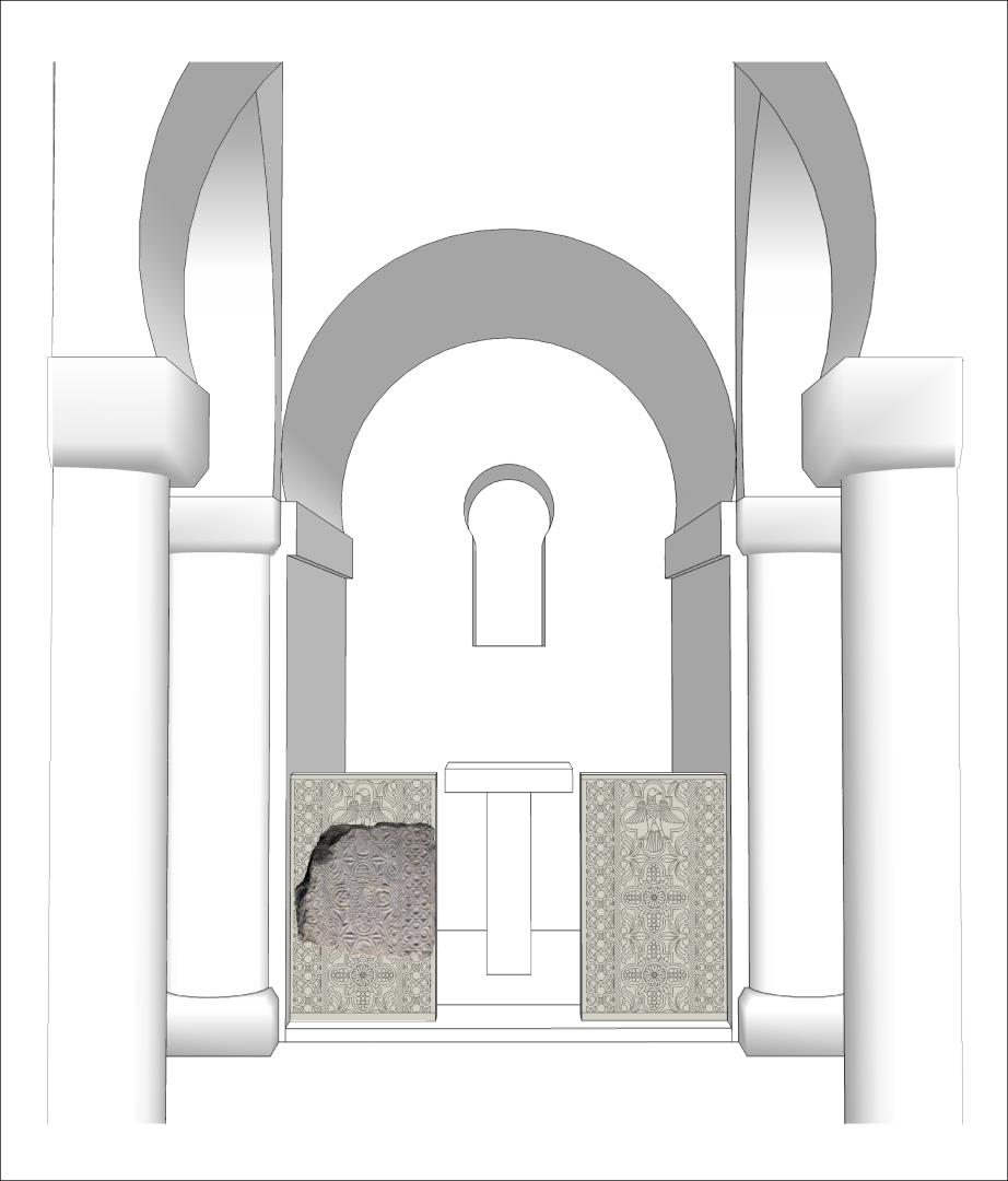 A peça deve corresponder à decoração de uma igreja moçárabe (assim eram designados os cristãos da Península Ibérica que, durante a Idade Média, viviam sob domínio islâmico). Apesar de muito fragmentada, e de ter sido recolhida fora do contexto original, trata-se de um segmento de cancela que compunha uma iconóstase – barreira de separação litúrgica entre as naves e o coro do edifício religioso.