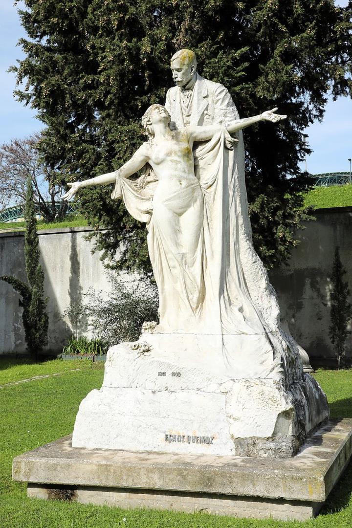 Em 1901, um ano após a morte do escritor Eça de Queirós (1845-1900), um grupo de amigos lançou a ideia de criar um monumento em sua homenagem. Iniciada a subscrição pública, foi escolhido o escultor António Teixeira Lopes (1866-1942), que concebeu um grupo escultórico naturalista: o escritor, representado com grande realismo, ampara nos braços uma figura feminina seminua. Trata-se, na realidade, de uma alegoria à Verdade que Eça de Queirós elevou ao estatuto de protagonista em A Relíquia, ideia reforçada pela inscrição que se encontra na base do conjunto e que constitui uma citação daquele livro: «Sobre a nudez forte da verdade, o manto diaphano da phantasia».