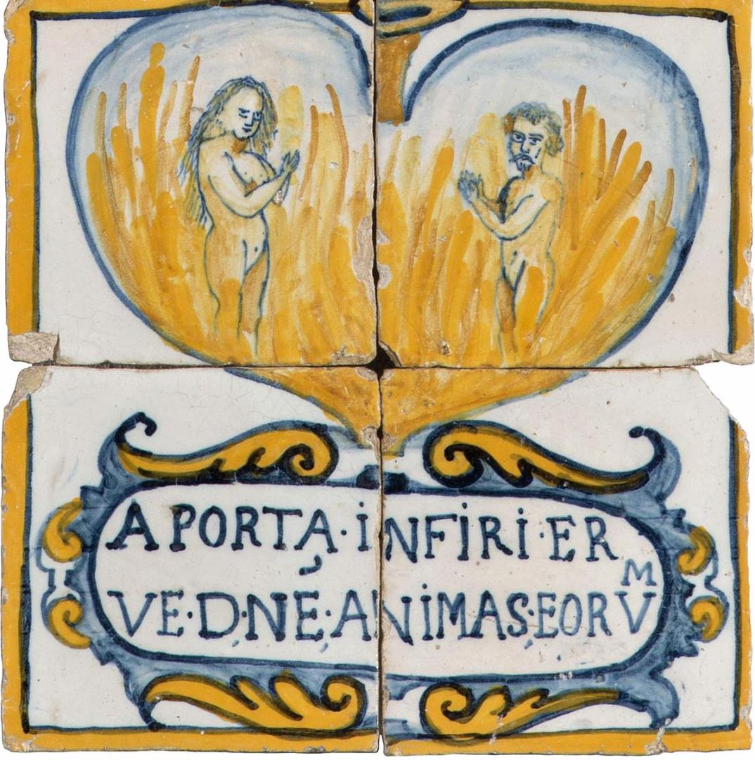 Originalmente colocado na Calçada do Jogo da Pela, nas imediações do Martim Moniz (freguesia de Santa Maria Maior), este registo de azulejos data da primeira metade do século XVII e ilustra um episódio bastante conhecido da vida e milagres de Santo António: a pregação aos peixes, que mais depressa escutaram a prédica dos santo que os hereges de Rimini, uma cidade costeira italiana. Acompanha o registo um quadro inferior dedicado às almas do Purgatório, em atitude suplicante, para que quem passe reze por aqueles que estão em trânsito.