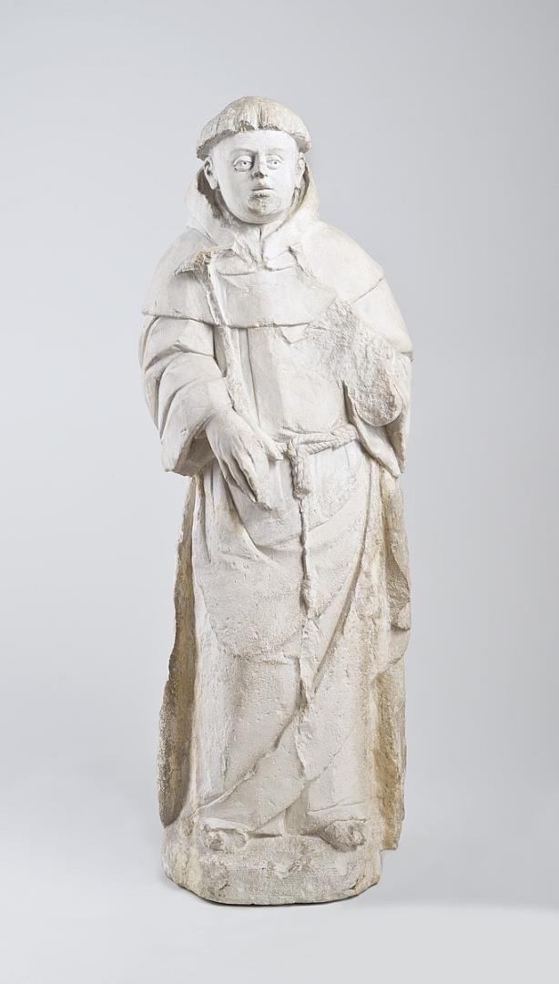 A escultura retrata o santo como frade franciscano, com túnica, cordão à cintura e sandálias, segurando o Livro numa mão, em alusão à sua imensa sabedoria, e a açucena na outra, símbolo de pureza e de castidade. Esta iconografia é bastante antiga e não apresenta ainda o santo com o Menino Jesus ao colo, associação que caracteriza a esmagadora maioria de imagens do santo a partir do século XVII. Adquirida pela Câmara Municipal de Lisboa em 1982, é uma das mais antigas esculturas de Santo António.