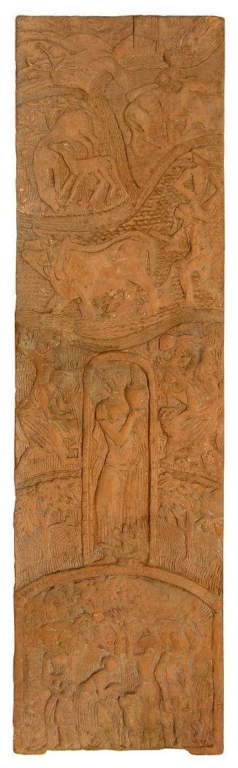 Com jogos de luz e mecanismos do engenheiro espanhol catalão Carles Buïgas (1898-1979) - também responsável pela fonte luminosa da Praça do Império, em Belém -, o monumento foi enriquecido com esculturas de Diogo de Macedo (1889-1959) e Maximiliano Alves (1888-1954), enquanto os corpos laterais exibem dois baixos relevos de Jorge Barradas (1894-1971). Inicialmente policromados, estes painéis integram várias cenas que valorizam o trabalho, a harmonia entre a cidade e a lezíria ribatejana e a união familiar reforçada pelo Estado Novo.
