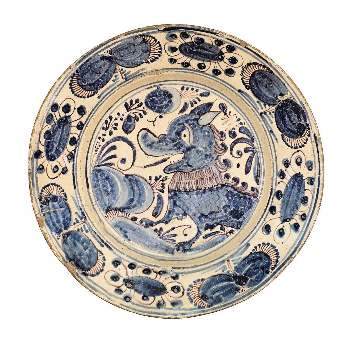 Em ambos os exemplares expostos os «aranhões» da aba do prato intercalam com pêssegos. Estes frutos, originários da China, são símbolos relacionados com o casamento e a imortalidade e foram muito utilizados nas porcelanas chinesas. Uma vez mais, de maneira mais ingénua e sem o simbolismo associado, foram motivo de inspiração para a faiança portuguesa.